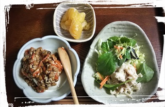昼)茹でブロッコリーオリーブオイル和え/きゅうりとうそガニ酢の物/納豆こうじ/甘夏 ※うっすらお日様も出てきて、 無性に、納豆こうじが食べたくなりました。 久しぶりのブロッコリーと酢のものも美味しかったです。 |