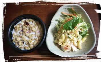 朝)グラノーラ/マカロニサラダ ※朝の牛乳は、身体が目覚めますヽ(^。^)ノ |