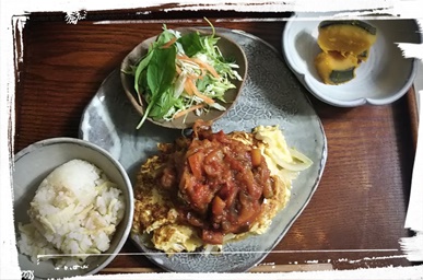 夜)新玉ねぎ入オムレツのラタティユがけ/サラダ/かぼちゃ煮 ※ラタティユは大好物のものの一つです。 水を一切使わずに、野菜だけの水分で(^_-)-☆ オムレツには、新玉ねぎをオリーブオイルで炒めたものを たっぷり入れて・・・ ※久しぶりのシンプルなかぼちゃ煮も美味しかったです。 ※ご飯は、小分け冷凍しておいたたけのこご飯です(^o^) |