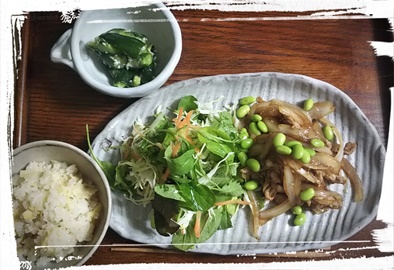 昼)目玉焼き/サラダ/フキの煮物/メンマ/味噌汁 ※久々に食べたくなった 目玉焼き。 私は、お醤油をかけて頂きます。 |