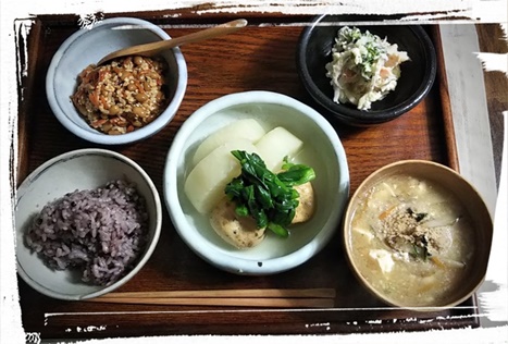 夜)大根とがんも煮/ポテトサラダ/納豆麴/味噌汁(ゴボウ、ニンジン、豆腐、ごまおから) 「ごまおから」をご存知でしょうか? ※山口ごま本舗 すりごまのようなものですが、 香ばしくて、本当に美味しいのです。 娘に「お味噌汁に入れる美味しいよ」と教えてもらったら、 ま〜〜〜、本当に美味しいこと! |