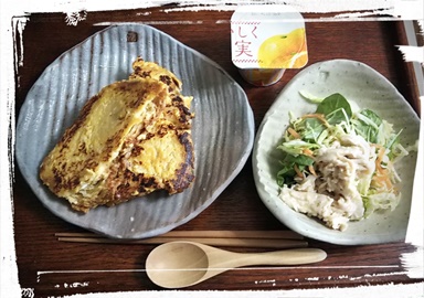 朝)フレンチトースト/鶏ハムサラダ/ヨーグルト 久しぶりに、パン焼き機で食パンを焼きました。 ちょっと固めの出来で3日経ったら、カチンカチンに(笑) フレンチトーストにしました。 |