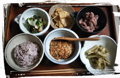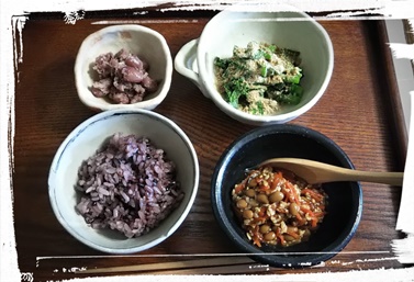 昼)納豆麹/小松菜の菜花おひたし/うずら豆煮 ※時間がある 今こそ、お豆を煮ます。 甘くてほっこり。 嬉しい甘さです。 |
