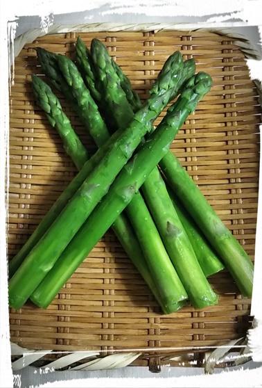 朝)ハムエッグ/茹でアスパラガス/焼きバナナ ※北海道の姉がアスパラを送ってくれました。 シンプルに、さっとゆでてそのまま・・・ 贅沢な幸せな麻ですヽ(^。^)ノ アスパラは、根元の部分をピューラで少しだけむいて、 1分ちょっと、塩茹でします。 固めに茹でて、ぼりぼりと頂くのが 最高の美味しい食べ方でしょうかヽ(^。^)ノ ※焼きバナナにはレモングラス入りハチミツとシナモンを・・・ |