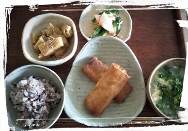朝)春巻き/漬物/タケノコ甘辛煮味噌汁 ※冷めた春巻きも美味しいです。 あとは、常備菜。 お味噌汁には、万能ねぎとゴマおからをたっぷり入れて・・・ |
