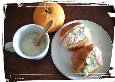 昼)ポテトサラダロールサンド/ポタージュ(市販)/甘夏 ※昨晩のらっきょう入りのポテトサラダでロールパンサンド ※ポタージュは、生協のお湯を注ぐだけ 美味しい(^_-)-☆ ※甘夏は、近くの直売所の2個100円 甘くないけど美味しい(笑) |