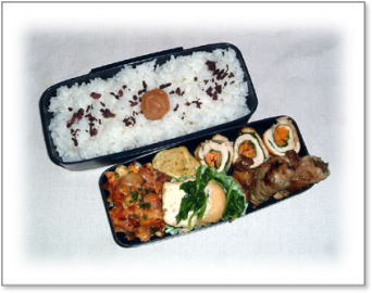 | 息子のお弁当 8 (高校生時代) 2006.9.末から「5ヶ月で5キロ太ろう!」命令?が部活で発令! しっかり食べて、でかくなれ! |