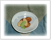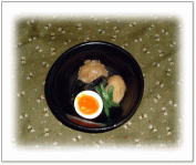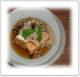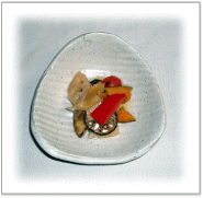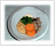 茹でた厚揚げにきのこタップリの あんかけをタップリと・・・ キャベツ・ほうれん草・トマトと 豚肉の冷しゃぶ ゴマだれもしくは万能かけぽんで 高野豆腐の間に、 海老すり身と豚挽き、 人参、しいたけのみじん切を入れ、 煮込んだもの 水切りした豆腐に しいたけ、人参、たけのこなどの 野菜をいれ、練り合わせ、 サランラップで包み、蒸す 仕上げにとろみしろ出しをかけ、 茹でた水菜を添える *「かずえの工房」のかずえさより教えていただいたレシピです。 美味しかったですぅ。ありがとう! 地粉をつけ、たたいたささみを しろ出しでサッと煮、1度取り出す その後、野菜(人参、シメジなど)を 似て、仕上げに豆腐をいれて煮る 最後に、茹でたほうれん草を添える ナスを立てに十字に切れ目をいれ、 間に大葉を挟み、 塩をかけて1-2時間おく 厚さ7〜8cmに切った大根の中央を くり抜いて、薄和風だしで煮込んだ 大根にラタティユを乗っけました |