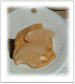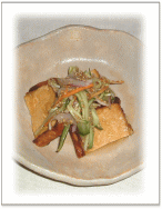 大根と仙台麩を煮込んだもの さっと茹でた大根葉を添える 薄だしで筍、がんもを煮たもの インゲンを仕上げに添える 出しこぶを入れて炊いたご飯に 塩茹でした枝豆を加える レタス、水菜、 オニオンフライのサラダ オレンジマリネに一晩漬けた油揚を フライパンで焼き、 人参、きゅうり、たまねぎを入れた オレンジマリネをかける *オレンジマリネ 100%オレンジJ・オリーブ油などで 作ったマリネ液 |