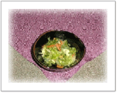 粗いみじん切りの ニンジン・きゅうり・キャベツを 塩もみして、ゴマと大葉の千切りを 加える。 |
