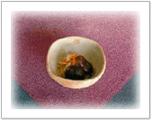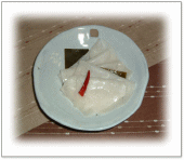 薄切りのカブを塩もみし、 カリカリに焼いたベーコンと マヨネーズ、練り梅で和える 聖護院大根と羅臼昆布で さっと茹でたプチヴェールを ごま、ピーナッツ(粉状)と マヨネーズで和えたもの ミキサーにかけたイチゴを お砂糖で煮て、 ゼラチンと生クリームを混ぜて 冷やしたもの あらめと人参、油揚で 薄だしで・・・ |
