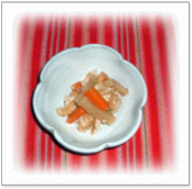 ごぼう・ニンジンの普通の金平の 仕上げに、おかかを たっぷりと加える。 |