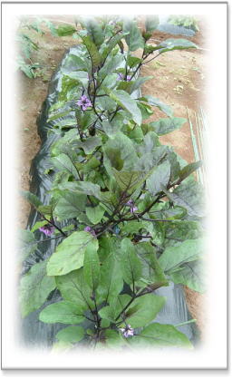 ![]() ナスも順調に、綺麗な花を咲かせています。 |