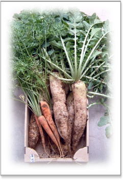 見た目も味も元気いっぱい! 八百屋さんで売らるくらい綺麗でしょう? でも、実は、大根・・・信じられないくらい辛いんです。 |