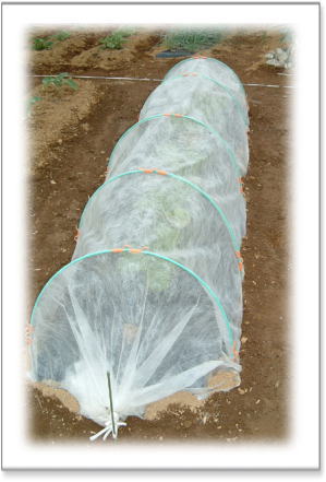 日に日にしっかり大きくなっているレタスに 虫除け網をかけた。 虫除け+温度UPになるとのこと。 |