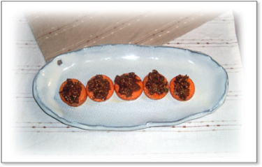 | 山芋と人参の黒ゴマ揚げ & ごぼうと人参の掻き揚げ 長いもはシャキシャキ感が残っているくらいがいい。 ごぼうと人参は金平で味付けしているので、 粉をつけてあげるだけ。 |