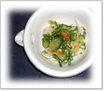 *野菜のマリネ 大根・かぶ・きゅうり・人参をマリネドレッシング (梅酢・シェリービネガー・オリーブオイル・りんごシロップ)に漬けます。 |