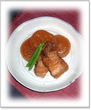 *大根と豚バラ肉の煮込み コトコトトに込みました。 インゲンを添えて・・・ |