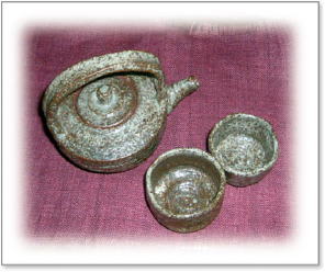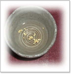 お屠蘇 夏に金沢のお土産で頂いた、金粉を入れて・・・ (おとそが入っている器は私作。金粉が解りやすいようにこの器に・・・) 実際のおとその器はネット仲間・さくら子さんから頂いたもの。 (=^・^=) |