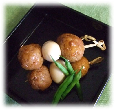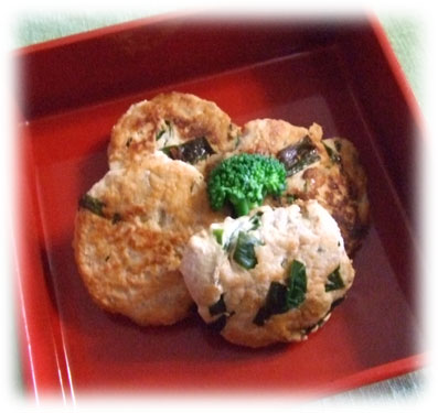 *ニラ入りつくね団子 トリヒキにレンコンとニラを入れて 甘辛くつくね団子、というよりは 今年はハンバーグにしてみました。。 |