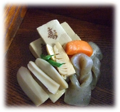 | *里芋煮 ほっこりした里芋は甘辛くて干しシイタケとも 美しい相性のよさ。 |