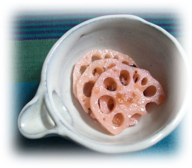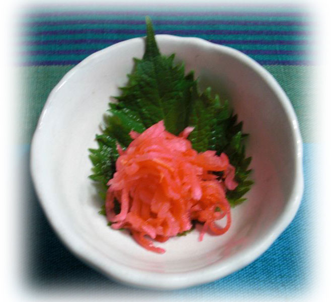 酢のもの大好きな息子の為の一品三浦紅大根は、「べにしょうが」のようでした。 梅干しとしその葉たっぷりのハスは食べだしたら止まりません! |