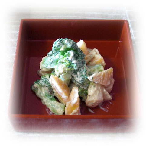 白和え いブロッコリー/柿/かぶ 絹豆腐に塩コンブだけ |