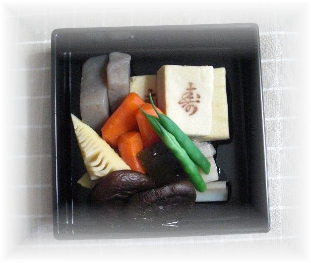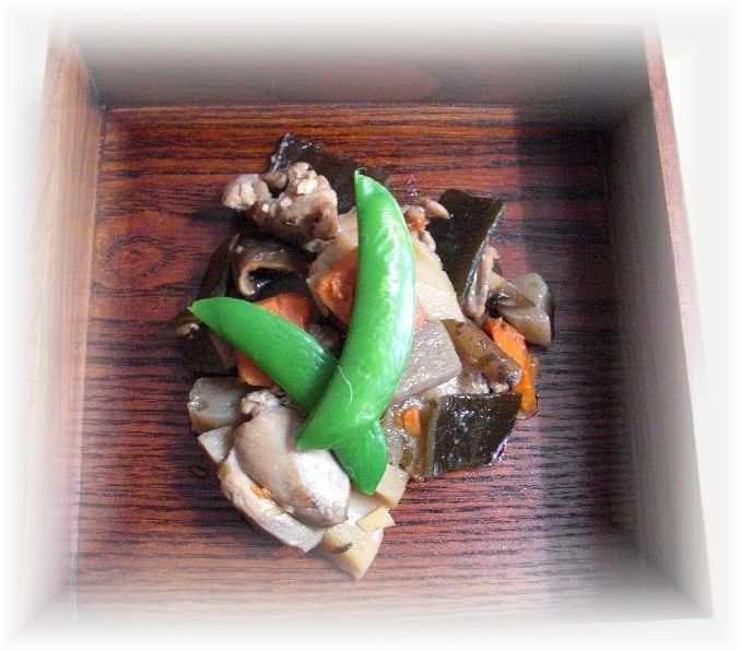 ![]() おせち料理の定番「筑前煮」 だし昆布も2cm角にして一緒にいただきます。 |