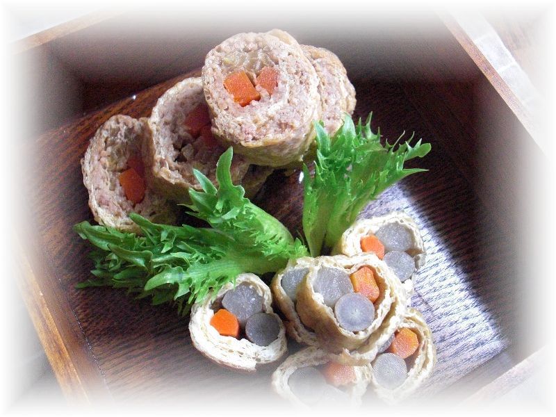 ![]() 今年は我が家の定番「信田巻き」だけでなく、 ぼごう、人参、大根を油揚げで巻き、 白だしで煮て、最後に柚子こしょうで味付けした巻物?を作ってみました |