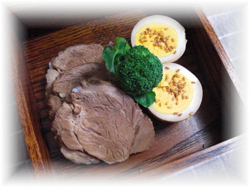 ![]() 煮豚は茹で卵とブロッコリーを添えて |