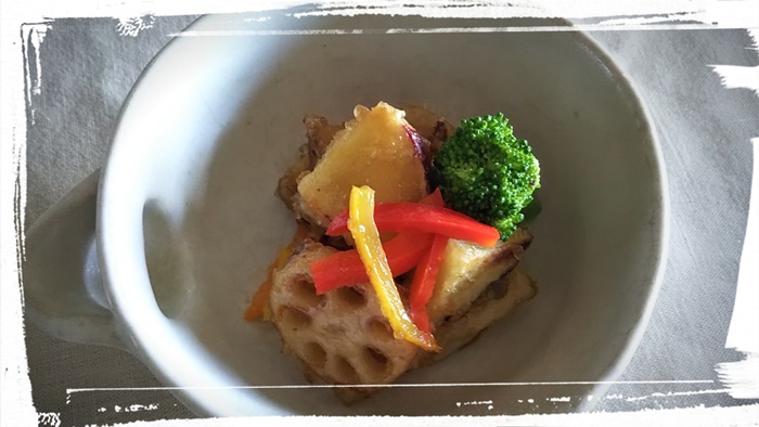 根菜類のマリネ サツマイモ、蓮根、ゴボウなど、根菜類を素揚げして、マリネに。 お好みで色々なお野菜でマリネを作ります。 |