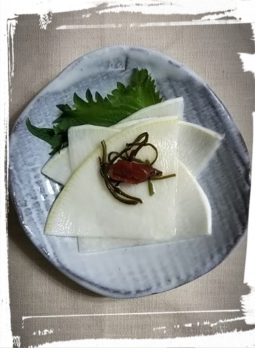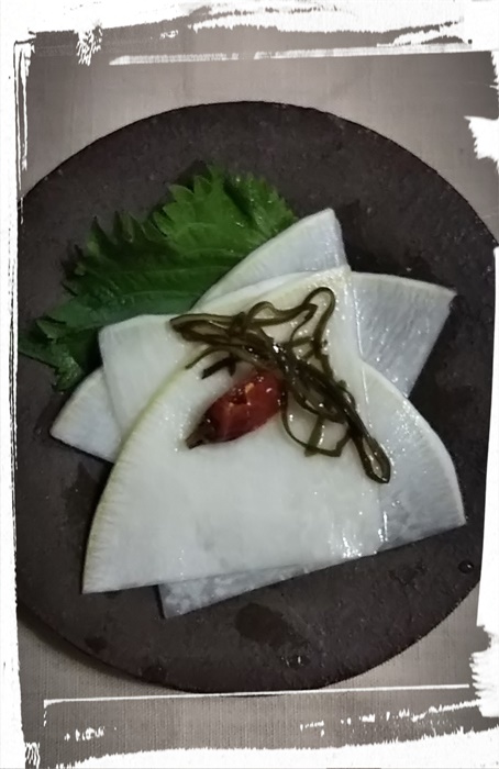 聖護院大根を頂くと 千枚漬けを作ります。 贅沢な一品。 |