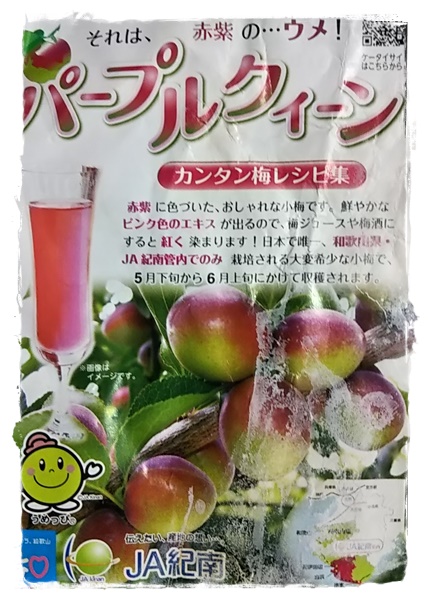 宅配生協で出会った 「パープルクイーン」 赤い小梅。 香りもよくて、シロップを作って、孫たちに。 |