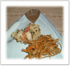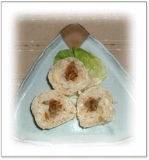 ![]() つくね団子としいたけ、 人参、インゲンを添えて・・・ |