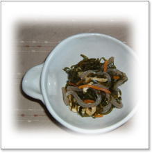 ![]() 「筍と南部麩とアラメの煮物」 ![]() 油揚げ・人参・糸こんにゃくとすき昆布の煮物 |