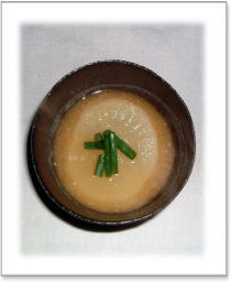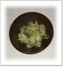「古糠漬け」 ![]() 実家の母が漬けたキュウリの糠漬け。 ちょっと古漬けぎみだったので、 薄くスライスしてしょうがとごまで・・・ 「タコとオクラの酢の物」 ![]() さっぱりと歯ごたえも良く・・・ 「大根味噌汁」 ![]() 4cmほどの分厚い皮付きだいこんを ことことしたお味噌汁 「カブの味噌汁」 ![]() まるまるそのまんまのカブを入れて・・・ |