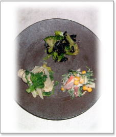 「ブロッコリーの胡麻和え」 「プチヴェールとハムのサラダ」 「水菜とコーンと人参のサラダ」 ![]() 昆布だし味噌汁にトマトと若布 シンプルで美味しい具です。 トマトは煮込まない美味しさと 煮込んだ美味しさと2通りが楽しめます! (=^・^=) 「油揚チャーハン」 ![]() 「はすのはさみ揚げ」 ![]() 昆布だしにキャベツとタマネギ、 仕上に「ふのり」を添えて・・・ 今回は、キャベツをごま油でサッといためてこくを 出しました。 「ひよこまめと豆腐とじゃがいものナゲット」 ![]() 茹でたひよこまめと水切りした豆腐、 蒸かしたジャガイモを良くこねてカラッと揚げます。 大葉との相性もばっちり! |