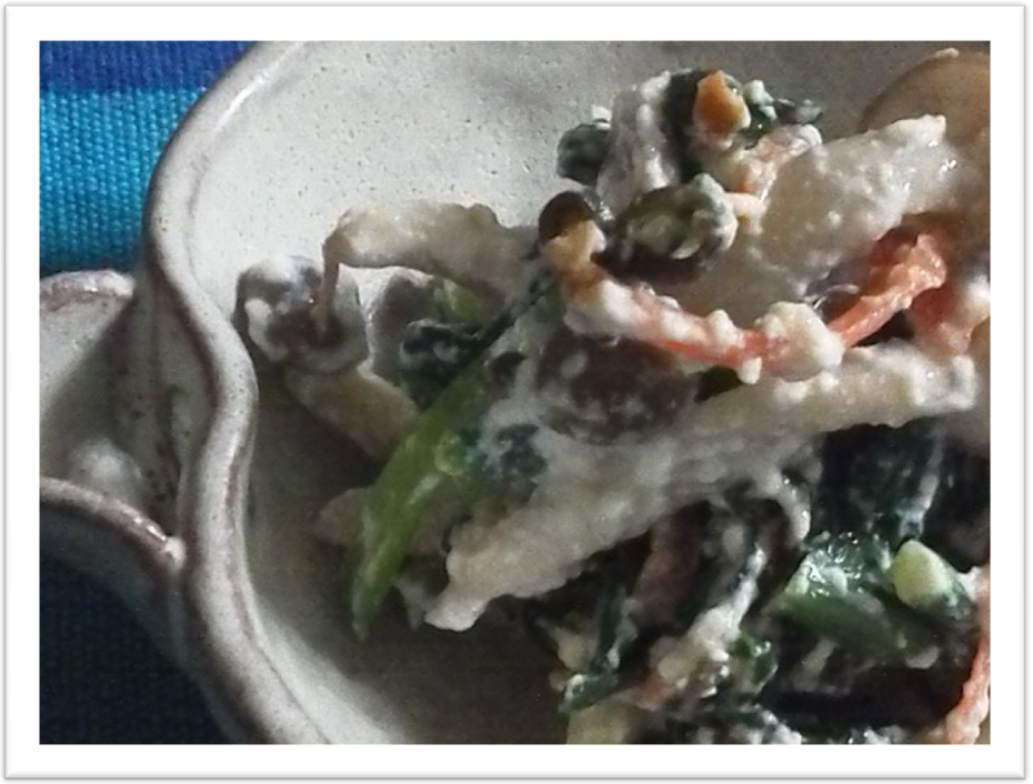 しめじは、白和えに・・・ 小松菜、人参もたっぷり入れて。 |