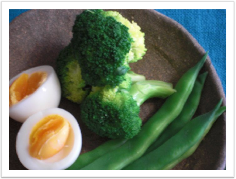 ブロッコリーといんげんは茹でただけ 歯ごたえのある美味しさは幸せの触感。 茹でた時の緑色は元気の色。 ![]() |