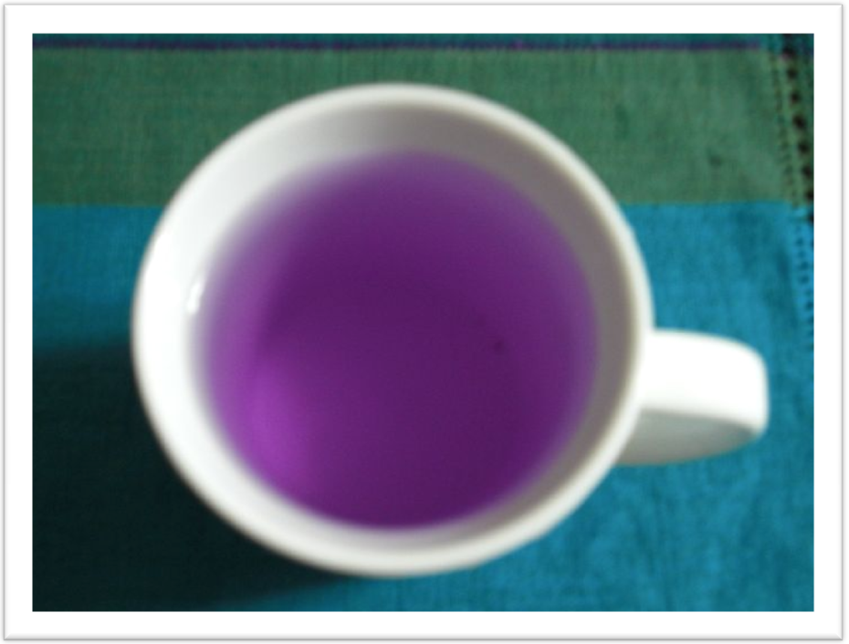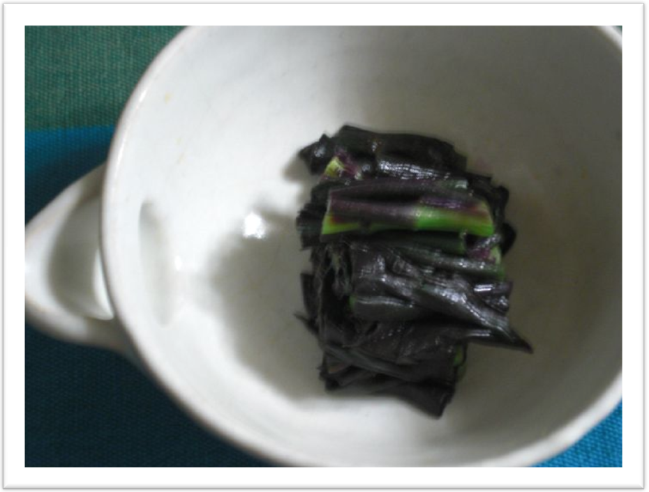 「つるむらさき」?? 名前を失念してしまったこの葉野菜は、 茹でた後の水がこんなに鮮やかな 紫色になるのです! |