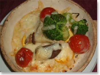 「黄色いズッキーニのグラタン」 野菜だけのグラタン 塩・胡椒・オリーブオイルだけで味付け 黄色いズッキーニは果物のようでした! プチトマト・ブロッコリー・エリンギ・しいたけ 冷蔵庫のお掃除にもぴったり! かなりの美味なり! (=^・^=) |