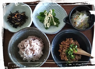 朝)納豆/ひじき煮/春雨サラダ/茹でさやいんげん ※久しぶりに納豆を頂きました。 ご飯が進んでちょっと怖いです(笑) |
