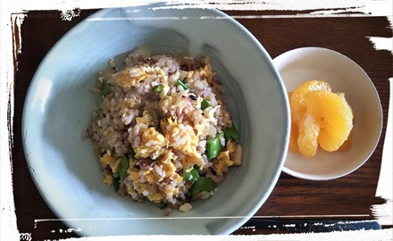 昼)炒飯/甘夏 ※久しぶりに炒飯がたべたくなりました。 玉ねぎ、ハム、卵、さやいんげんをたっぷり入れて。 |