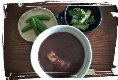 昼)お汁粉/きゅうりの中華漬物/スナップエンドウ ※甘いものが食べたくなりました。 思い切って、お昼ご飯にお汁粉にしました。 缶のあんこを使いましたので、簡単です(^_-)-☆ ※キュウリは、塩こうじとゴマ油とらっきょう酢とゴマで即席漬物に 生協の個人宅配で「訳ありキュウリ」というのがあります。 立派なキュウリでちょっとまがっているモノなのですが、 5〜7本で約300円です。 みずみずしくてでも、歯応えがあって、美味しいキュウリです。 漬物にピッタリです。 |