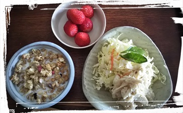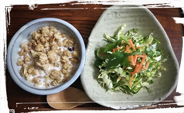 朝)グラノーラ/サラダ ※今朝はグラノーラ気分ヽ(^。^)ノ サラダもたっぷり頂いて、気持ちの良い朝です(^_-)-☆ |