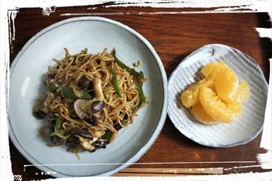 昼)野菜焼きそば/甘夏 ※麺よりも、野菜の方が多い焼きそば キャベツ、キノコ、ピーマン、人参・・・ ※宅配生協さんのキノコセットはお安くて美味しくて、色々と楽しめます♪ |