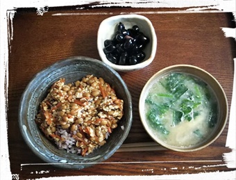 昼)納豆麹/小松菜の菜花おひたし/うずら豆煮 ※時間がある 今こそ、お豆を煮ます。 甘くてほっこり。 嬉しい甘さです。 |