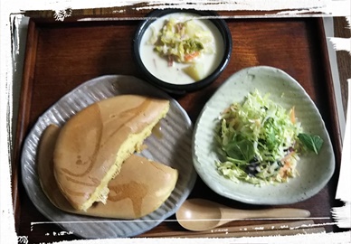 朝)野菜牛乳スープ/サラダ/ホットケーキ | ||