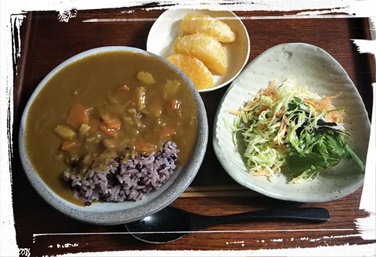 昼)カレー/サラダ/キウィ ※昨晩のカレーを再び。 写真撮影に失敗していたことに気が付かず完食(笑) |