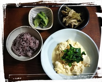 夜)小松菜の菜花入り蕎麦/うずら豆煮/塩糀漬けもの(キュウリ、人参、大根、キャベツ) ※寒い時は、やはり、そばかうどん。 ふ〜ふ〜言いながら頂き、ぽっかぽっかに・・・ |
